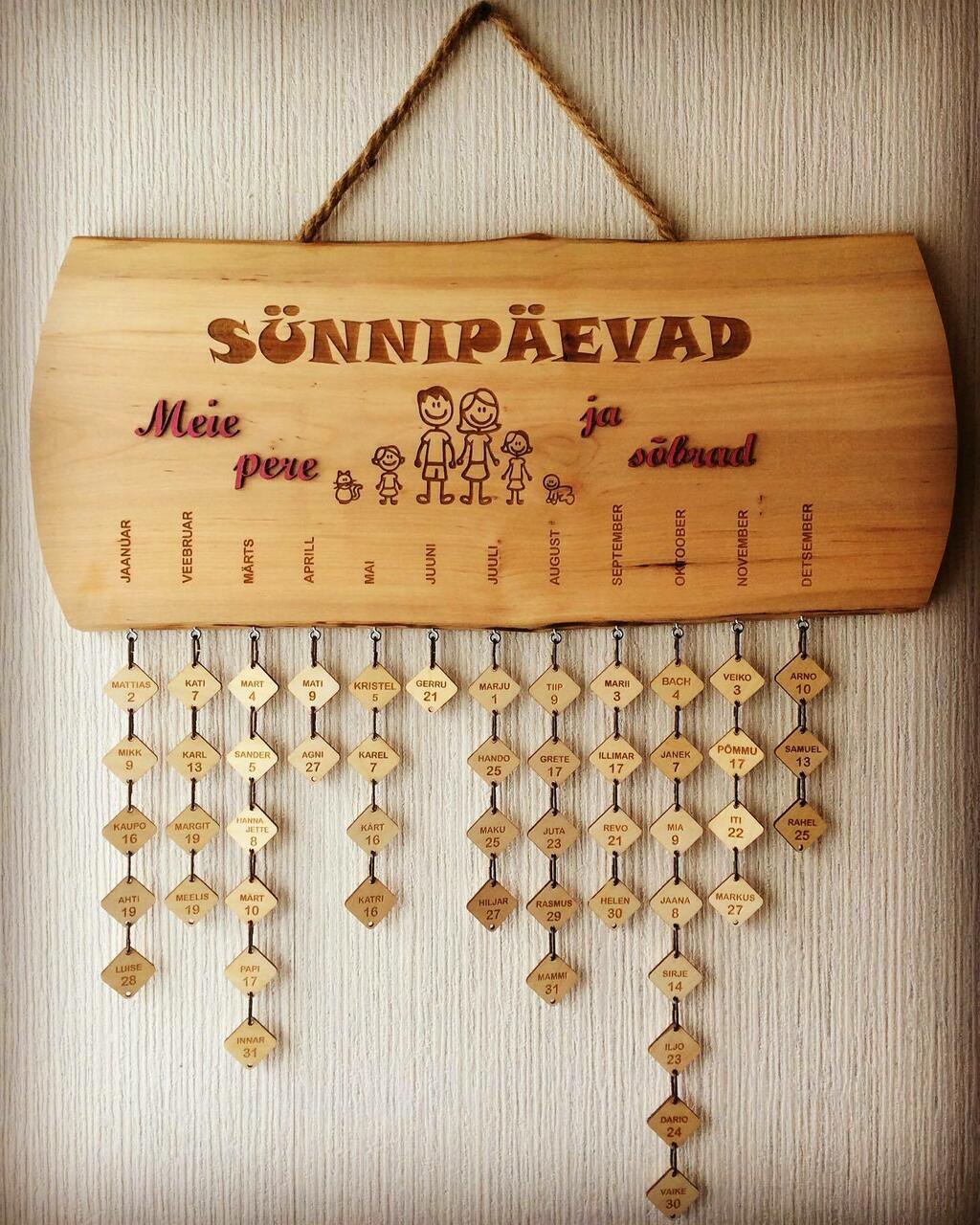 Telli oma seinale või kingituseks sünnipäevade kalender. Iga kuu all ripub nimi + kuupäev, et kõik tähtsamad sünnipäevad meeles püsiksid.