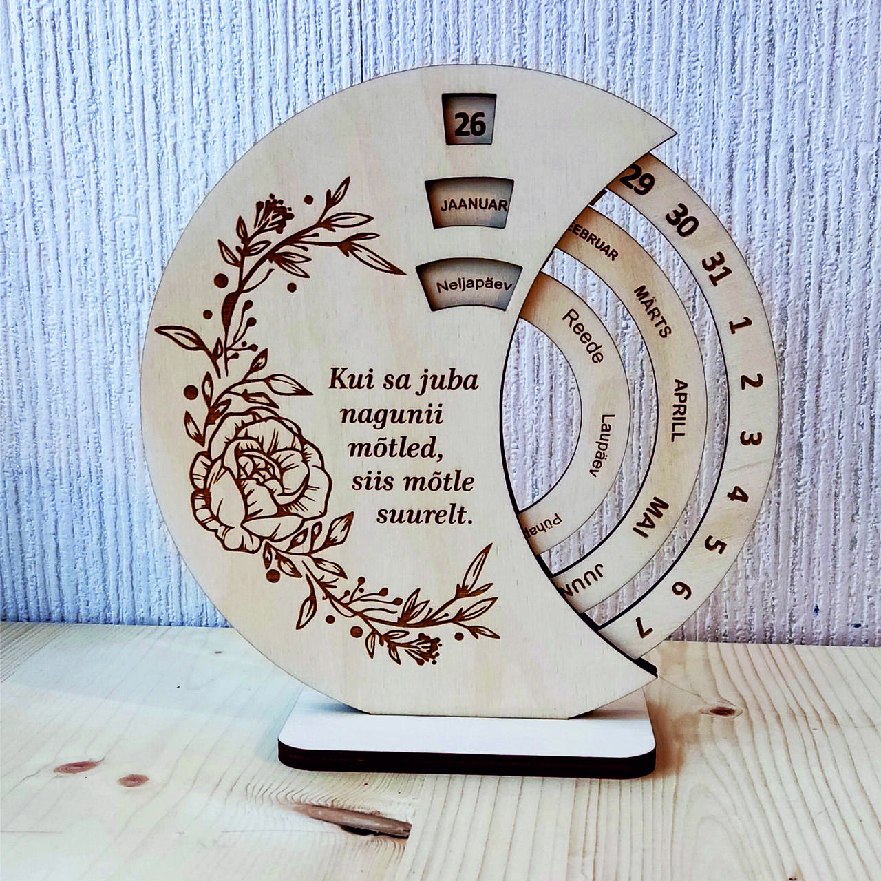 Imekaunis lauale pandav kalender, mis ei aegu kunagi. Esikülje kujunduse teeme nii nagu soovite. Võib jääda selline nagu pildil, aga võime ka muuta.