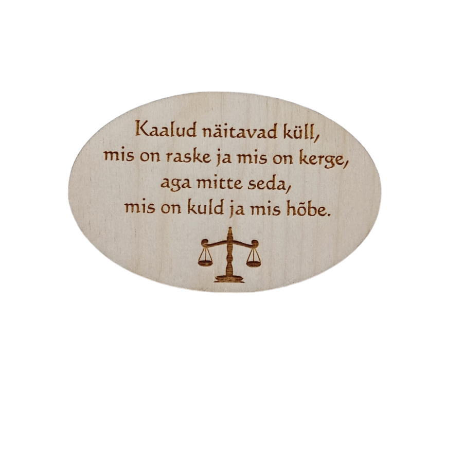 Magnet külmikule kinnitamiseks. Valmistatud 3mm kasevineerist. Tekst peale graveeritud.