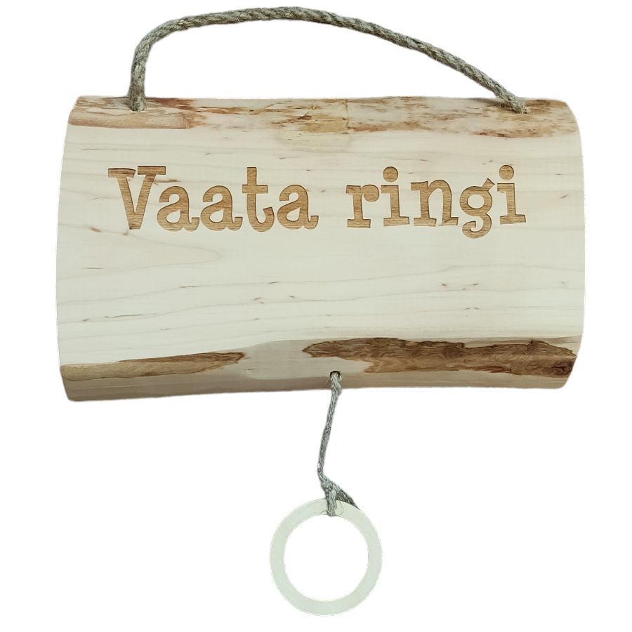 Servamata lepalauale graveeritud tekst. Rippuv ring on valmistatud 3mm vineerist.
